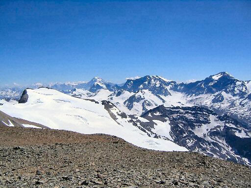 L'Aconcagua au fond à gauche, le plus haut sommet de l'hémisphère Sud.